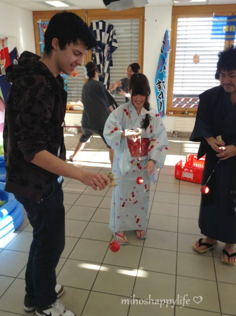 I love Japanese Yukata and Kimonos (´-ω-`)-♡ Lunch Time I chose Katsu Curry *_______* Mochi-making CalligraphyWho knows Kendama? (Japanese toy) It is quite addicting! Origami