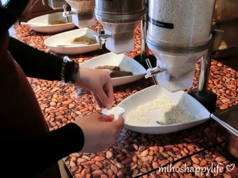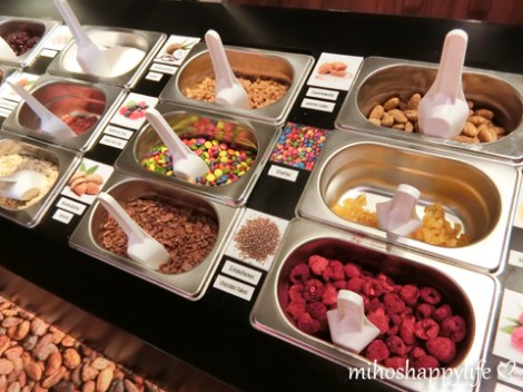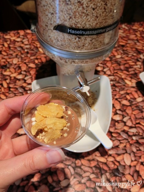 My beautiful Japanese friend just arrived in Switzerland yesterday! We met each other one year ago in Tokyo (I did not post my travel diary yet (ノ_<。) I am so sorry guys – going to post it soon, promise!) and I was so happy to hear that she will stay some days before heading back to Japan. So we met today for a girls meet-up in Lucerne. I suggested her to visit the Aeschbach Chocolatier in Root D4, which is about 10 minutes by train from Lucerne main station. The chocolate factory has a small chocolate museum, shop and restaurant. The entry fee for the Chocoworld museum costs 15 CHF (~14 €/15 US $) for an adult person, but since you get a 5 CHF voucher – which can be used at the cafe or chocolate shop – it is actually only 10 CHF. We had the whole museum (and all the chocolate :D) for ourselves. You could observe the chocolatiers, learn about the history and production of chocolate and taste some of the delicious treats for free.