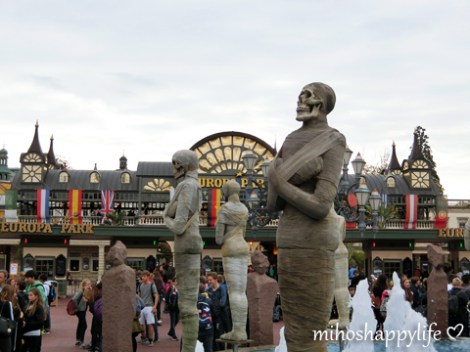 How was your weekend? I had a great day with my lovely friends in Germany, Rust. It is Halloween at Europapark right now – one of my favourite season beside summer. The park is full of pumpkins, spooky decoration and creepy monsters. We normally go once a year. We have already been in summer this year, but since my sister and some of my friends were free, we decided to go again. There were quite a lot of people for a Friday, I think because of school holidays in Germany. Nevertheless the weather was nice and we still could do some rides. We decided spontaneously to go to the Horror Nights in the evening. The atmosphere was good, but I honestly have to say that it was better last year. I liked the actors from 2016 with all the bloody zombies. I didn’t make a video this time, but took many pictures (as always (o^^o)) for you.