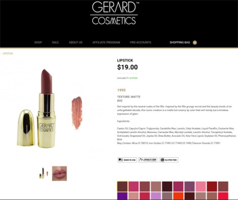 Today, I would like to show you my favourite lipstick. It was many years ago, where I stuck at a blog post (unfortunately, I don’t know the site anymore…) and I found a really nice shade called “1995”. I think I was looking for a halloween make-up look – whatever – it was love at first sight. I had to get this lipstick from Gerard Cometics. I remember that there was a special deal with three lipsticks (3 for 2 or free shipping… can’t remember, it is really a long time ago). The price was ok (I paid custom duties though lol). I am very happy with the consistence and stability of the lipstick. It is quite difficult to find lipstick which are smudge resistant and long-lasting. The one from Gerard Cosmetics are not 100% perfect, but definitely one of the best I have ever had.