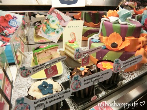 Craving for fancy cakes with a heavenly cup of tea or coffee? The Miyuko Cafe is one of my favourite place to have a break, when I am around Zurich. The first time I have been there was in 2011 (and since then unfortunately never again!!!). Sara Hochuli, cake artist and owner of Miyuko, organised a Lolita Afternoon Tea party, which I will never forget. It was almost the beginning of my affection (and addiction) for Lolita fashion (I think it was even my second Lolita meet-up back then)! So, I did a day trip in Zurich with my boy, where we first had a short look at the Manga/Anime shop called Jeeg. The shop moved to another location and became so much bigger now. You can have DVDs, anime figures, mangas, video games, plushies, posters, magazines and many more merchandise from Japan. Then we had lunch in the city and checked the clothing stores around the Bahnhofstrasse (the most famous shopping street in Zurich) before we needed a coffee break in the afternoon. The cafe is very near from Zurich central station (it’s a 10 minute walk or you can take the tram Nr. 7 direction Stettbach, leave at the station Sonneggstrasse). The cafe is – compared to others – rather small, but offers a lovely and cute ambience. The cakes are very fancy, have a very exotic flavour combination, but are very delicious (I had a Matcha pineapple cake btw). This sweet treat was the perfect finish after a long amusing day. PS. Do not forget to try the Miyuko Matcha chocolate! It is amazing!!