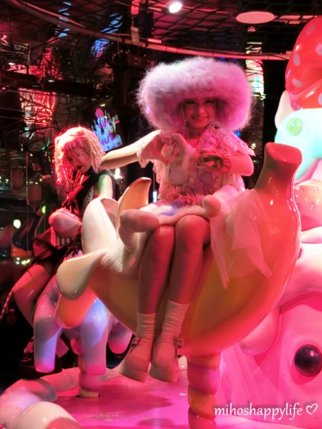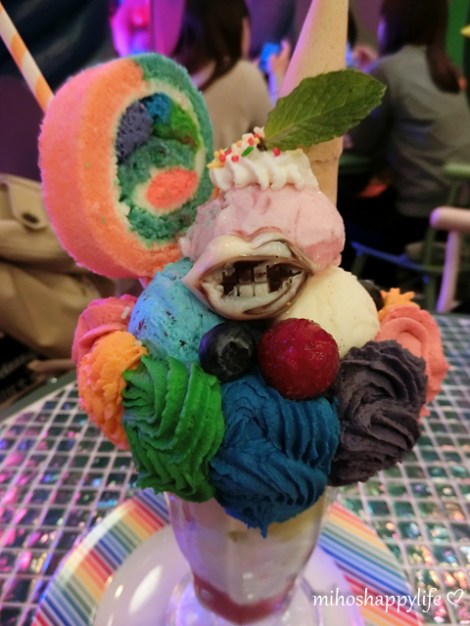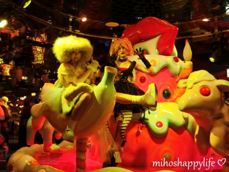 The craziest cafe in Harajuku is definitely the Kawaii Monster Cafe! The Monster Cafe opened not that long ago and I was very excited when I heard that it has been inspired by Kyary Pamyu Pamyu, one of my favourite Japanese singer. The cafe is truly as crazy as her! The Monster Cafe is very near from the Laforet department store and just 5 minutes by foot from Harajuku station (when the street is not crowded). I don’t know how busy the cafe is now, but to be on the safe side, we made a reservation for lunch. When you visit the cafe, you enter a big door and the first thing that you will see is a sparkling merry-go-round cake. The interior is amazing, I really enjoyed the different areas, where you can have your meal. The food is fancy and so colourful, it was almost too good to eat! In the cafe you can meet different monster girls and take pictures with them. During a certain time, they even organize a monster show for you, so watch out for it and don’t leave the cafe too early, otherwise you will miss a monstertastic show!