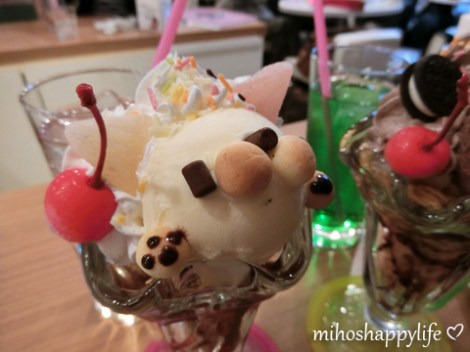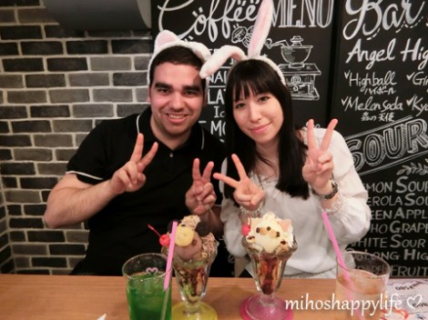 Looking for “moe moe kyun” moments in Japan? Would you like to be served by a cute maid girl or just want to eat kitschy food? If you are in Akihabara, watch out for the maid cafes. The cafe is a bit different to the other themed cafes, but still a visit worth it. It is not only for lonely single men like most of the people always think. You can see couples, foreigners or (female) groups visiting the cafes. The costumes varies from cafe to cafe and I really enjoy their kawaii food. I visit a maid cafe at least once during my stay in Japan. Normally, I have a look at my favorite @Home Cafe @ほぉ~むカフェ, but it was already near closing time, so we had to look for another one. A lovely maid (you can see a lot standing outside, doing advertisement for their cafes) recommended and escorted us to the cafe called Maidreamin めいどりーみん. It was more like a bar than a cafe, but it made still fun and the ice cream parfait was super cute too. I definitely need to visit more different cafes than only hanging at the @Home Cafe, but it is easier said than done, since I have a member card (I ranked up on my last trip haha, bye bye bronze card, hello silver card!).