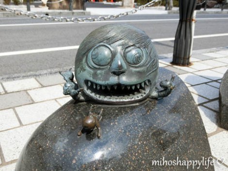 So from the JR Sakaiminato station, you can walk the Mizuki Shigeru Road and discover more than 150 yokai characters. They also have lots of shops, which are themed with GeGeGe no Kitaro. At the end of the road, you can visit the Mizuki Shigeru Museum, if you are interested to know more about him. The road is not only for children, as an adult, you can also have heaps of fun here!