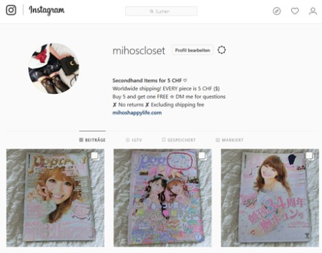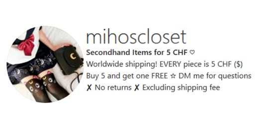 May you remember my blog post about the Konmari (cleaning up) method. I threw away tons of clothing pieces from my crowded and poor wardrobe. There were some pieces, which are still in good condition and I decided to sell them on my new Instagram account mihoscloset, where you can get EVERY PIECE for 5 CHF/$. If you buy more than 5 pieces, you can even pick one piece for free. I also “expanded” my selection and started to sell my old japanese magazines or letter sets or notepads, that I never used. I am currently doing a special offer during August, so you can get every piece for 3 CHF/$!!! (the “one for free”-offer doesn’t count here). Don’t miss this chance and have at least one look at mihoscloset. May you will find something you like :)