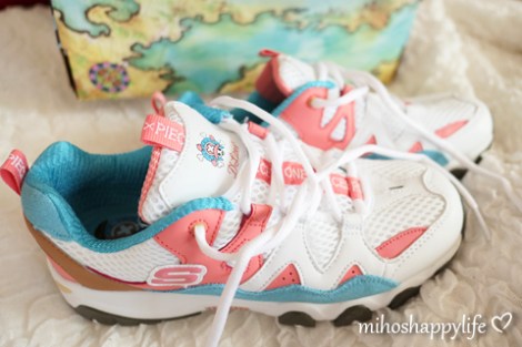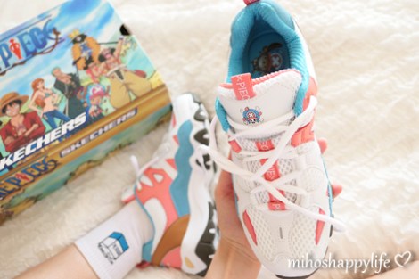 Do you believe in love at first sight? This happened to me when my bf showed me the One Piece sneakers from Skechers! Normally, I am not that into sneakers or massive sport shoes, but I must confess that these sneakers really convinced me! I have to say that it was quite difficult to find them, because most of them were sold out and very hard to find (specially in Switzerland!!). I sent several Sneaker stores an email and tried to reach them on Instagram and Facebook (some were quite unfriendly or didn’t even have any idea where they had those shoes on stock, that was quite annoying…). Somehow I managed to order my dream sneakers (Chopper version) at the Sneaker Store in the shopping mall “Mall of Switzerland“. They could organise a pair from the remaining stock in Lausanne. In the meanwhile, you can buy the new second collection of the One Piece collaboration in almost every Skechers store (they only have the women’s shoes at the Mall of Switzerland though). The sneakers are very comfortable and comes with a second shoelace (mine were rose) and a really cool box. They look super nice and I love the combination of blue and pink. Furthermore, I like the small details – the charmingly designed logos and the little surprise inside the shoes. I can’t wait to wear them – oh summer please hurry up!