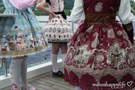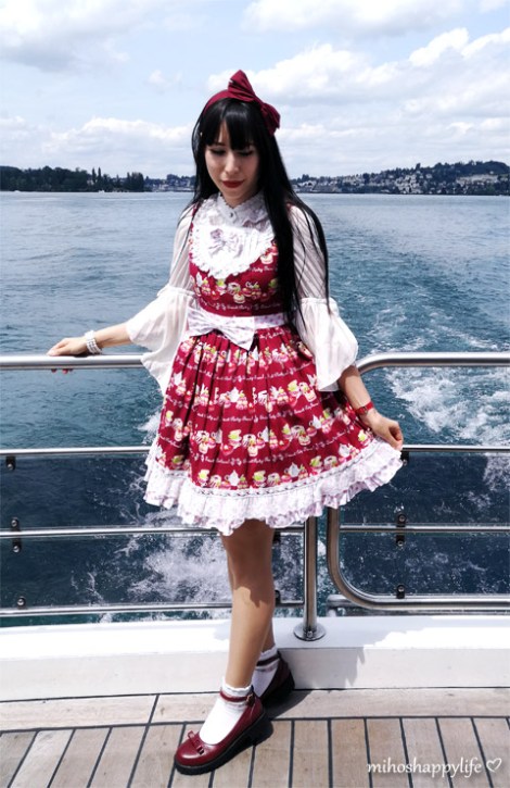 There was another Lolita meetup some weeks ago! Dear Makipata organized one in the beautiful city Lucerne. Summer meetups sometimes can be a pain – especially when it is super hot and you are wearing multiple layers. Anyhow, the temperature was just perfect and it wasn’t even raining. We met up in front of the train station to first enjoy a heavenly 1h boat cruise with the Saphir on Lake Lucerne. The fresh breeze and the surrounding nature was extremely relaxing. Later on, we moved forward to the old town to have afternoon tea at the Queen Camellia Tea House. You can enjoy a delicious vegetarian afternoon tea with all kinds of sweet and savory delights for 35.- CHF. The tea house has a big variety of teas and for the afternoon tea we could choose up to three pots (for two persons). Since it was all vegetarian, it was a different kind of afternoon tea than I had so far, but everything was very good (almost the best one that I had!). My favourite treat was the bite-sized scones and the orange marmalade! It was my first afternoon tea in Lucerne – but definitely not the last one. We don’t have many tea rooms in Lucerne, but the Queen Camellia Tea House is definitely a good choice! We stayed until the tea room closed and before we all said goodbye, we passed the Chapel Bridge and did a group photo just next to the Jesuit Church. Thank you one more time to Makipata for all the great organization and thank you to all dolls, who joined the meetup. I always enjoy our time together!