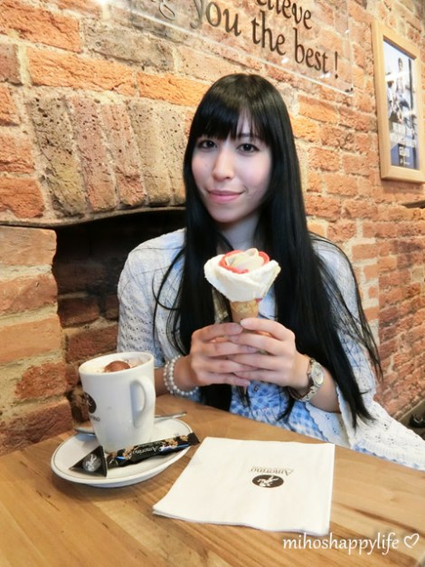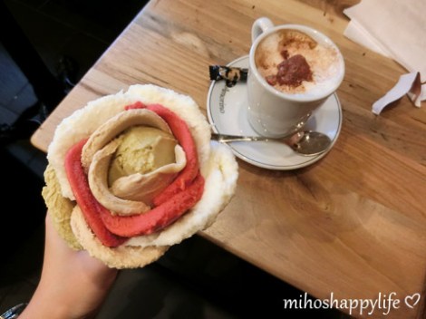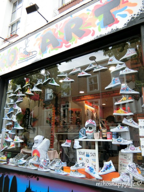 It’s just a souvenir shop though Jelly Jolly Shoes! Another ‘blue door’ Old sewing machines everywhere Welcome to the famous Portobello Road Market The red door lol You can find a lot of fancy stores here! Let’s take a break at the Amorino Cafe You can choose as many flavours as you like! Macaron on top! There is now one in Switzerland!