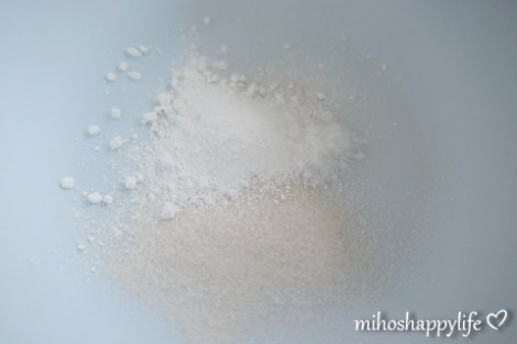 1. Mix flour, baking powder, sugar and salt in one bowl