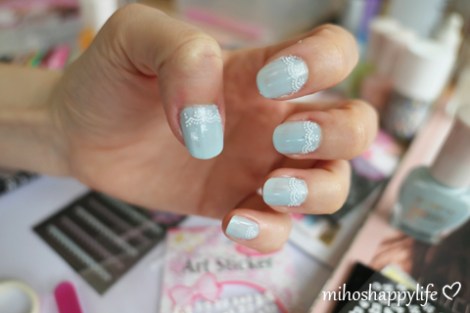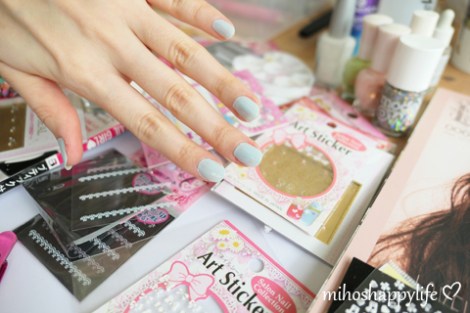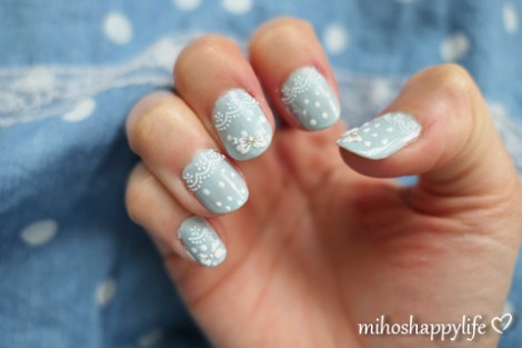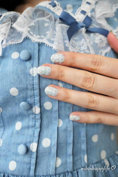 Lack of creativity? You don’t know what to do with your nails? Accept a new challenge and try to match your nails to your outfit! I put on this light blue Liz Lisa dress with simple dots and I suddenly wanted to transfer this design to my nails. It is easy and can be done/combined with any colour you like. Hope you love this idea and it gives you some impressions for your next nail session.