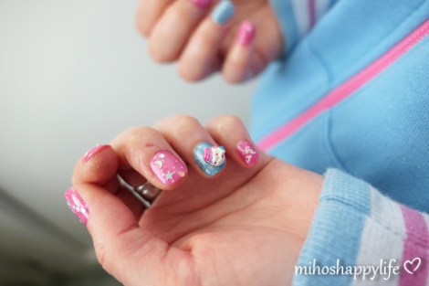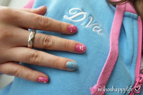 My sister is obsessed with (playing) Overwatch, so I made some D.Va inspired nails for her. She picked the colours (and that giant deco cupcake, which was surprisingly very matching) and I started painting! The base colour was pink and blue – what else – and we added some glitter and sparkly confetti. On one side, we put the deco cupcake (which I got from Claire’s) and on the other side, I draw the face of the D.Va bunny. The whole process was much easier for me, because I didn’t have to struggle with the “left hand painting” problem (nail artists will understand), may I should experiment on others more often lol. That’s it for today, next blog post will be about travels. Stay tuned~!