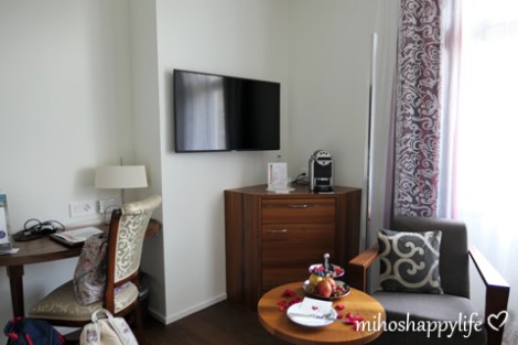 – A glass of prosecco per person, fruit and chocolate in the hotel room