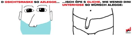 Here is a great example of how you should not wear a face mask. Would you wear your underwear like this? Source: Energy.ch