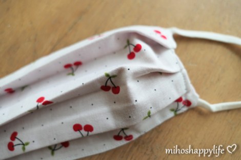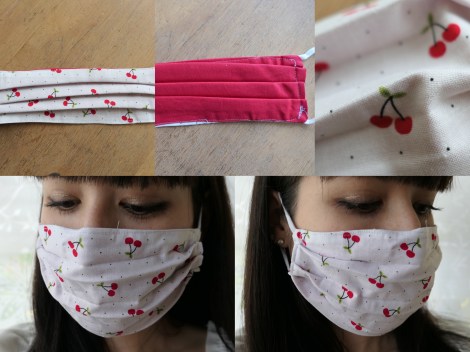 Review: It was love at first sight! I found this super cute cherry mask on ETSY. The size and form was a little unique (as you can see on the picture below), but it was all fine, until I put it on. No adjustable elastic bands, but comfortable.