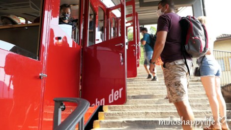 Take the overwhelming mountain experience and summer terrace at 2’132 meters above sea level! Welcome to Pilatus Kulm! I have been there on Swiss National Day (1 August) last weekend and I already miss that moment; enjoy the marvellous mountain view, hang out in the sun, have picnic on the terrace and just do silly things with friends. The Pilatus is a mountain massif overlooking Lucerne in Central Switzerland. There are several ways how to get on top of Pilatus. We took the train from Lucerne to Alpnachstad (17 min) and went up with the cogwheel railway to Mount Pilatus. These railways are the steepest in the world (commissioned in 1889 and a gradient of up to 48%). The travel time from Alpnachstad to the mountain is around 30 minutes. Due to the corona virus, face masks are mandatory on the railways and gondolas.
