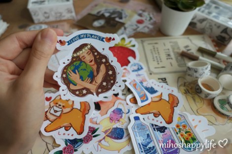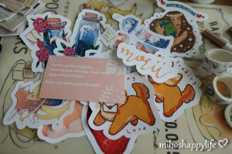 The stickers arrived quite fast (I got them within approx. 2 weeks) and it also came with some free MORII logo stickers. The stickers are not as strong/thick as the common skateboard stickers, it’s more light, but the colors are very vivid and intense. The material was perfect for my envelope crafting and I also tested if they are waterproof, which is quite an important criteria for me. The colour luckily remained intact without smearing and you could only see a light stain where I was rubbing a cotton buds soaked in water. I am very impressed of the stickers and I am definitely going to buy more hopefully soon. MORII shop is continuously adding new artists, so don’t forget to check out their page from time to time. I am sure there is something for everyone!