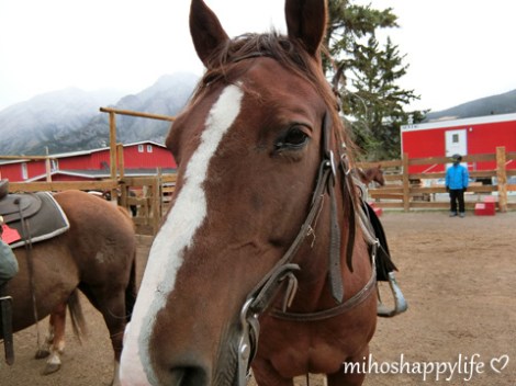 Welcome to Banff – the highest town in Canada! The town of Banff is located inside Banff National Park, Canada’s first and the world’s third national park, established in 1885. Most of the park (96%) is wilderness and the park itself is 6,641 square kilometres. The townsite is surrounded by mountains, mountains and again mountains! From downtown, you have access to natural hot springs, hikes, horseback riding – which I am going to show you in this post – yummy food and great shopping opportunities! I have never done horseback riding before, so I was super excited! Two of my travel mates joined me to this riding adventure. We could book the activity directly at the Banff Rail Riders Store in town, the horseback riding itself was at Warner Stables – Banff Trail Riders, which was approx. 20 minutes away from the store. Unfortunately, I don’t remember how much I paid, but I think it was the Bow River Ride for CA$ 59, where we could enjoy a 1.5 hours ride along the Bow River. We had an appointment in the morning, the staff there was very friendly and provided us with all necessary information about riding their horses. My lovely buddy was ‘Pistol’, she was a good girl at the beginning, but at the end she kept trying to leave the trail to find higher grass, despite my diligent attempts to keep the horse on tack and follow the instructions of the staff… Anyway, she managed to carry me safely back to the Stables. The horseback riding made a lot of fun! I would love to do it again!