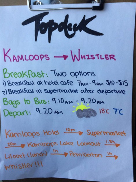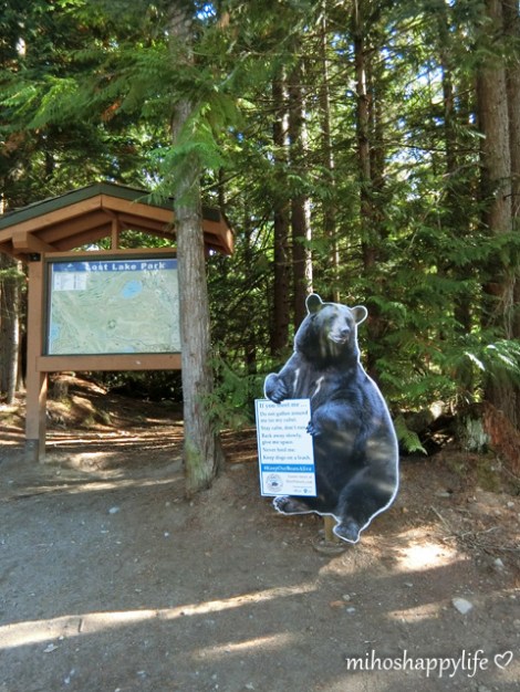 The Topdeck tour is slowly coming to an end! Before we drove back to Vancouver city, we could enjoy our last few days in Kamloops and Whistler. We had a scenic drive with lots of stops in the Kamloops region and two free days in Whistler, where adrenaline junkies went zip lining, others (like me) went shopping, eating or took a walk in the woods. You probably won’t believe me, but I went on a relaxing (well it was at the beginning) walk with a friend at the Lost Lake Park. It was a nice park, where people were walking and we found a normal walking path into the woods, everything was peaceful until we saw a little BEAR just a few miles from us on the walking path – OMG. I saw bears may times at zoos or even in my country (there is bear park in Bern), but always with a barrier in-between, so my heart started to panic, haha. Nevertheless, we stayed calm and slowly went back to the main road and took a long break near the lake. Bears are NOT ferocious, which means that they are not mean or malicious, but they have to be treated with respect and always keep in mind some important rules when you encounter a bear. Bears are normally shy, retiring animals that have very little desire to interact with humans and they usually choose to avoid us. If you ever see a bear, avoid direct eye contact, don’t scream or yell and DO NOT RUN! There are also bear bells (we didn’t have one though), a small bell that you can attach on your backpack, waist belt or any other external piece of gear. Bear bells are not meant to scare a bear, they are designed to warn a bear. This was definitely a little scary but an exciting experience, however, I still prefer a barrier and save distance. This was one of my highlight in Canada, hahaha!