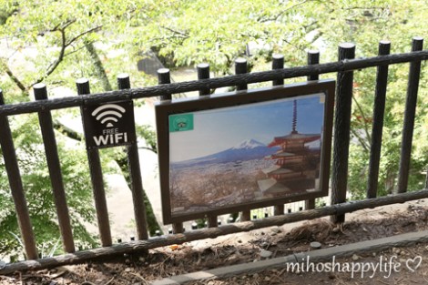 If you got your tickets at Shinjuku, the best way is to leave the bus at the Chuo EXPWY Shimoyoshida station. From there it is around a 15 minutes’ walk until you reach the Chureito Pagoda. Make sure to wear good shoes and bring some snacks and drinks for a picnic – you need to walk a lot of stairs! The Pagoda was easy to find, just follow the signs, which you can see everywhere along the streets. There are toilets around the Pagoda/Shrine area, as well as some nice picnic spots. We first took a look at the Arakura Fuji Sengen Jinja Shrine and then we went up to the Chureito Pagoda. There were not a lot of people standing there, so we could take some lovely pictures (sadly with a gloomy view… yes, I couldn’t see Fuji this time either, buhu). If you walk some more steps upwards, you will find a nice picnic spot with an excellent view to Mount Fuji (depending on the weather conditions).