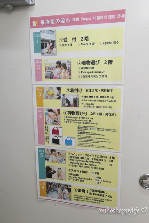 The whole process took around 1.5h~ (it depends on the plan you have and how quickly you can choose your Kimono). So we basically arrived at the Kimono rental shop at the booked time and went through following steps: