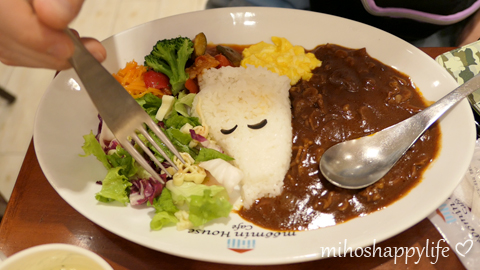 You look so peaceful with your Moomin to lean on ^^ it looks like a lovely cafe too. How is the food?