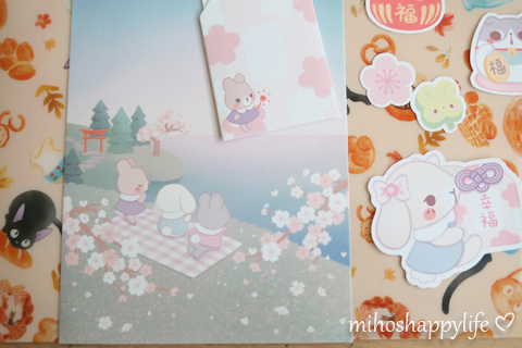 Let’s move on with Tiffany’s happy mail from February (so sorry for the delay >w<) I will skip March, because we got a cute magnet, so no crafting for next month. February’s theme was Cherry Blossom Blessings!