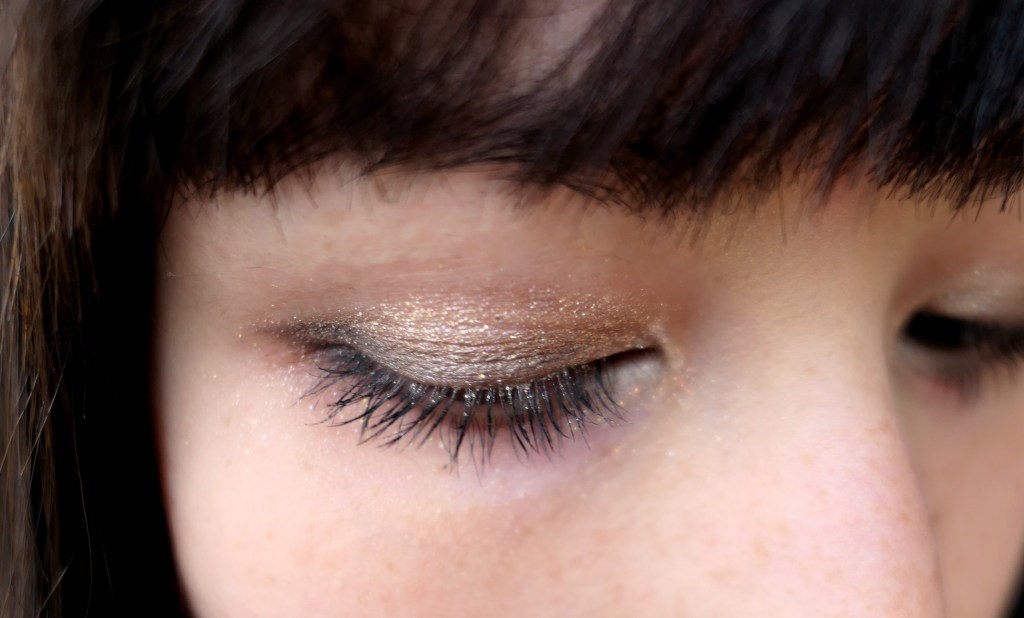 The eyeshadow was very easy to appply. It is not waterproof, but it dries very quickly and is totally smudgeproof. It stayed in place all day long. Unfortunately, the liquid reminded me of gluey glitter and it sadly got a bit clumpy on my eyelid… it looked ok, after I blend it out with my fingers.