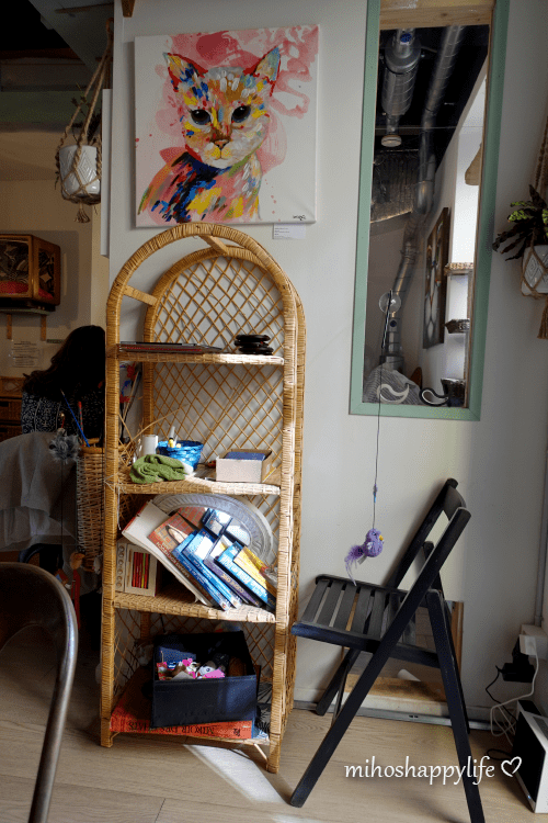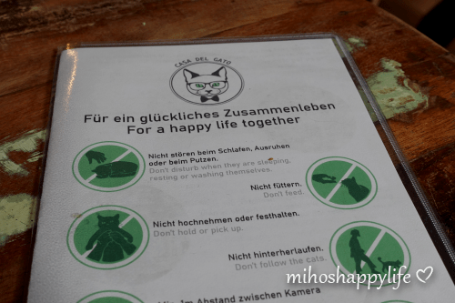 The interior of the café was very pretty, I loved the wooden touch and the green jungle prints put you in a holiday mood right away. There was also a very nice terrace, where even the cats can go outside and enjoy some sunny days, as soon as it gets a little warmer. Compared to the typical Japanese neko café, I missed the activeness of the cats, which is the main reason why I visit a cat café. However, I can fully understand, since they have max five cats and Japanese cat cafés have usually a crazy amount of cats, so you have those who are constantly active and the other half, which is sleeping in the background. Moreover, in Japan, you have to pay an hourly fee, which was not the case at Casa Del Gato.