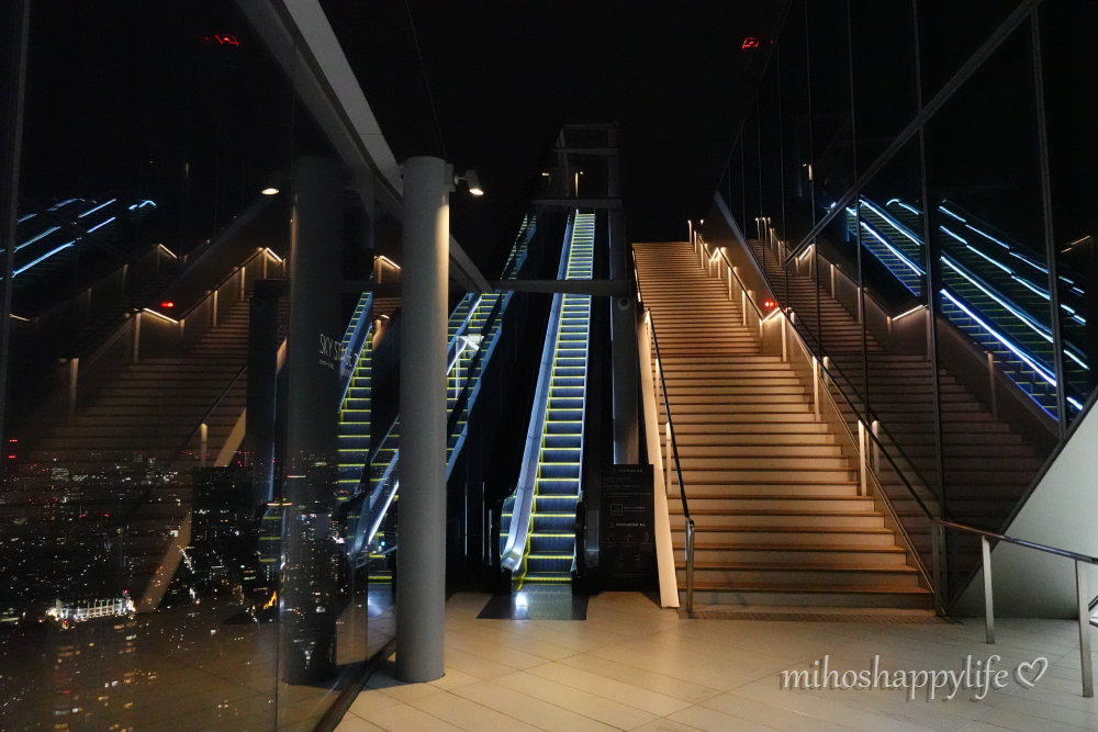 For safety reasons, you have to put your luggage into lockers (100 yen required, which will be returned after use), before visiting the rooftop. Of course, you can take your phone and camera with you. The escalator will take you to the highest level, where a spectacular endless view opens! The skyline at night was amazing and my favourite direction was the corner with the view of the popular Tokyo Tower!