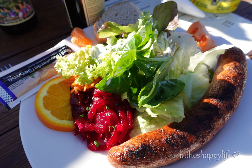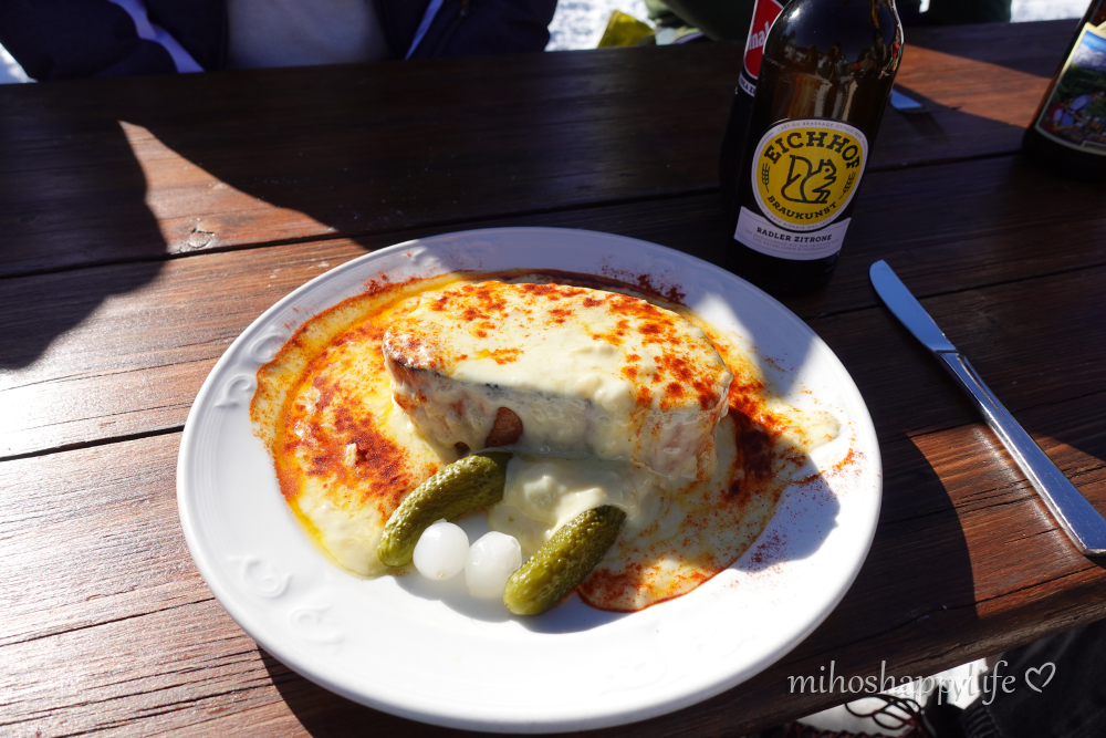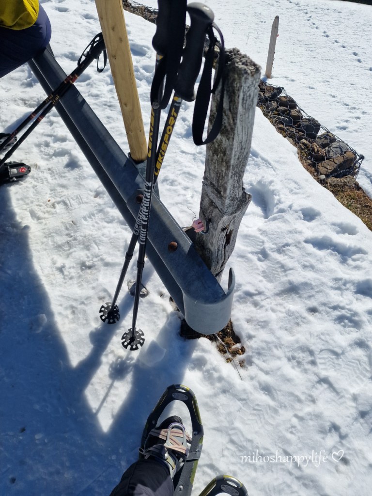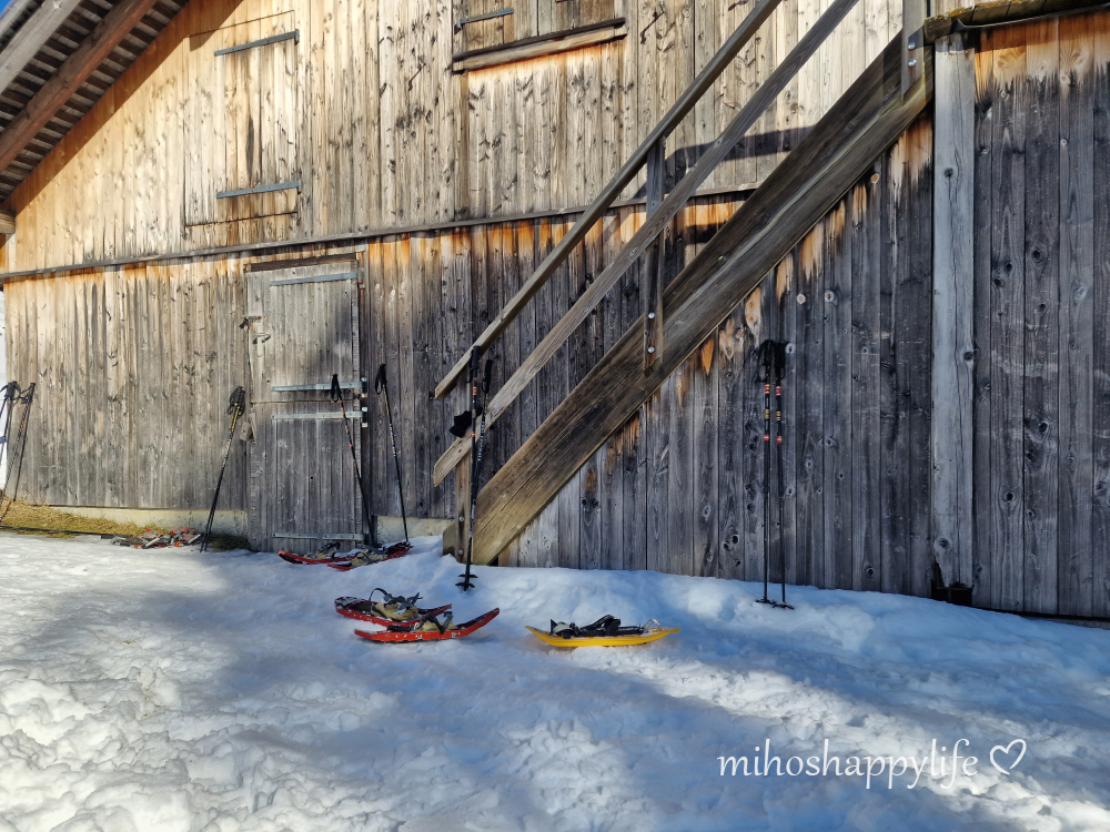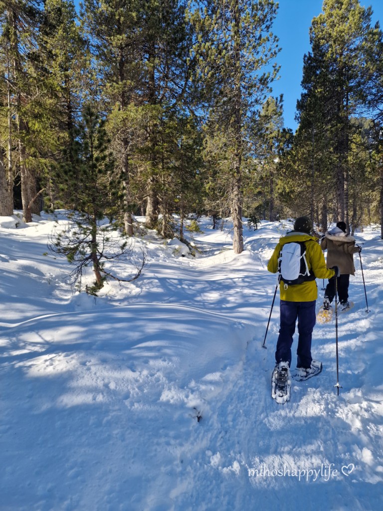 The sun was shining and the air was crisp, making it the perfect weather for a day of exploration in the great outdoors. As we set out on the trail, we were greeted by stunning views of the surrounding mountains and lush forests. After hiking for around two hours, we arrived at a beautiful wooden mountain house, where we took a rest. A friend brought a little picnic, which added to the overall enjoyment of the experience. The picturesque surroundings provided the perfect backdrop for our outdoor meal! The quick snack and warm winter punch provided a welcome break and fueled us for the challenging hike back to the starting point. The exciting snowshoeing activity had left us with a big appetite and we were eager to find a cozy place to have lunch. We ended up at a charming mountain restaurant called Bergrestaurant Schwendi-Kaltbad. I had a delicious Swiss dish with melted cheese – it was the perfect meal after a cold winter’s day!