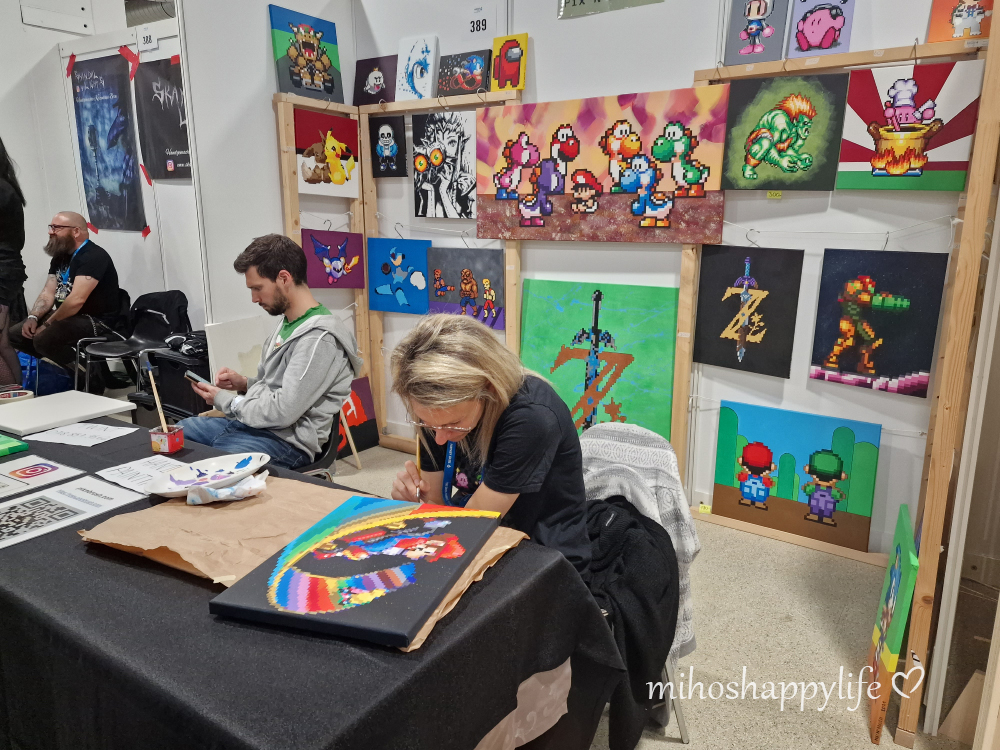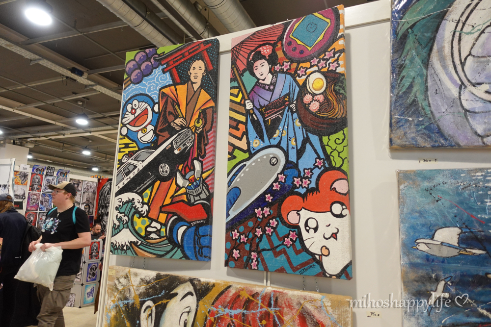 Unfortunately, due to some delays in the morning (our taxi driver came back home very late from a party lol), we arrived later than planned and had not enough time to check all the stands and halls. As soon as we arrived, we headed to the Japanese Food Hall to grab some Karaage (fried chicken). Once we finished our meal, we took the opportunity to explore the Merchandise Hall and Cosplay Village. Anime merchandise lovers will find themselves in paradise. The abundance of booths and vendors offering a wide range of anime-related products, from figurines and posters to clothing, accessories and many more geeky stuff! The Artist Alley hall was undoubtedly the highlight of my experience and it’s where I happily dedicated the majority of my time and money hehe. It was a captivating space filled with talented artists from all around the world, showcasing their creations, live drawing and offering commission opportunities. I was most thrilled to finally meet the artists whom I had been following on Instagram for a long time! In the last hall (where we sadly had the least amount of time) you could find the Gaming Zone, which was all around Games, VR and eSports, the Swiss Space Museum and the Star Wars Zone, where fans can marvel through unique photo sets and a Sci-Fi scenery.