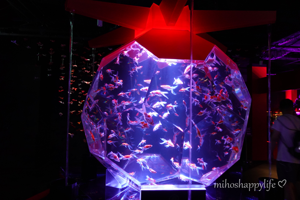 Arriving at 10:00 to beat the crowds, I was mesmerized by the surreal displays at the Art Aquarium Museum. It felt like stepping into another world, where shimmering fish gracefully danced in ethereal tanks. Here, you can marvel at thousands of goldfish swimming in glass vessels of various shapes and sizes, illuminated by dynamic projections and multicolored lights. The museum has about 70 types of goldfish, giving visitors a calm break from busy Tokyo.