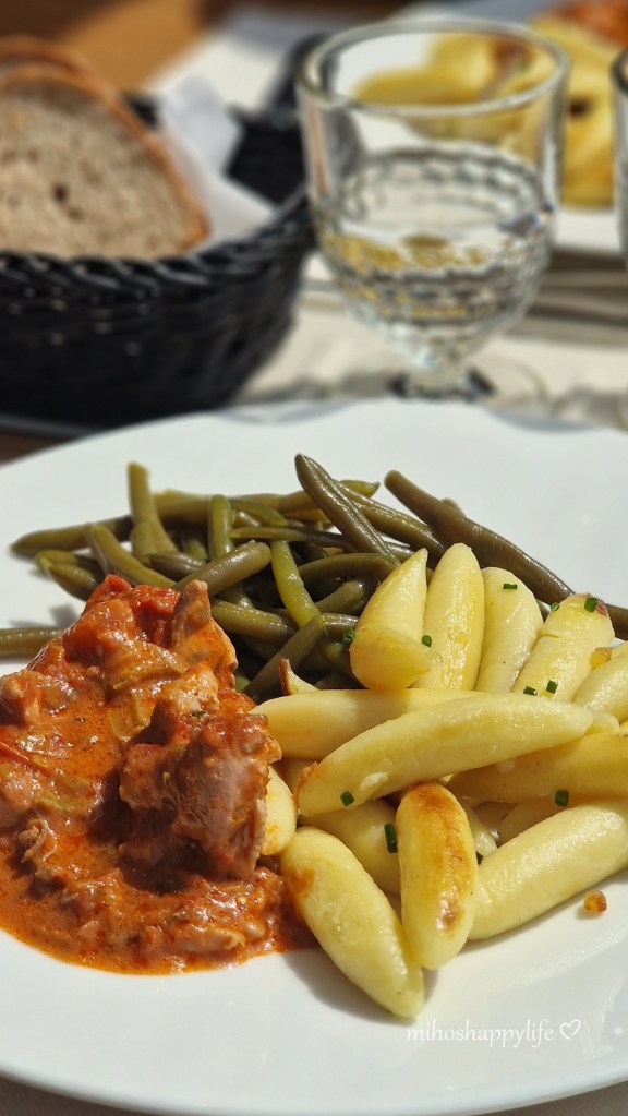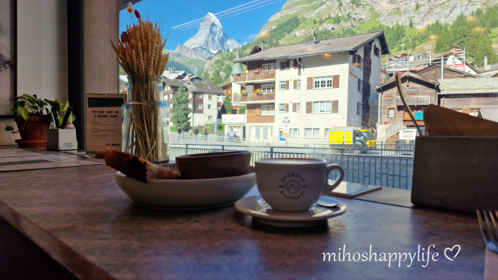 With our muscles still sore from the hike, we decided to take a relaxed approach for the day. We began with some light shopping for breakfast and picked up cheese and ham for an afternoon aperitif. I visited Zermatt Kitchen for breakfast on my own, where I enjoyed a wonderful egg benedict with avocado and a breathtaking view of the Matterhorn. Later, we strolled through the picturesque village. I highly recommend walking along Hinterdorfstrasse to admire the traditional Zermatt houses, which are reminiscent of the barns and stores of upper Valais – a photographer’s dream! In the afternoon, we savored a delightful aperitif with delicious snacks and white wine. When the rain started as we were about to head out for dinner, we chose to eat at Restaurant Avena, conveniently located right next to our apartment.