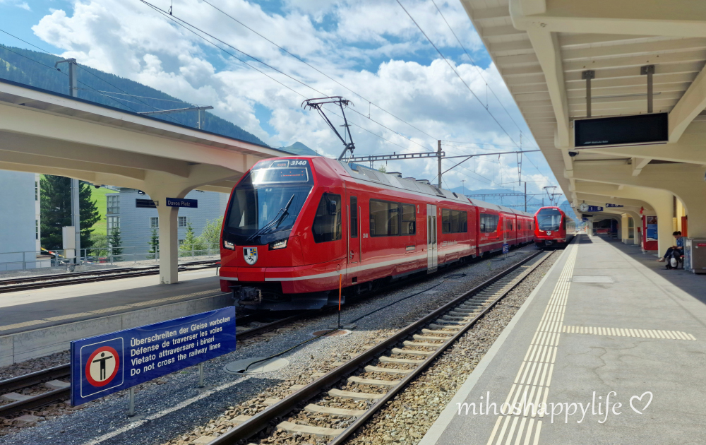 Time to say goodbye to Zermatt! We boarded the train to Brigg to catch the Glacier Express to Filisur, our next stop on the way to Davos. The scenic ride took just over 5 hours and was breathtakingly beautiful. As we were traveling around lunchtime, we enjoyed a delicious 3-course meal on board – food with a view, what more could you ask for? The train ride was incredibly peaceful and relaxing, with informative audio guides that highlighted notable spots along the way.