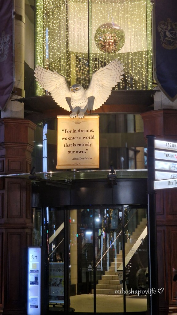For this trip, I chose to stay in Akasaka, which turned out to be a perfect decision. Unusually for me, I skipped my go-to areas and landed right in the middle of what felt like a hidden gem for Potter fans. There is a special charm to Akasaka’s “Wizarding World Street” – a quiet little stretch that feels like a portal into another universe. Lanterns, themed signs and an atmosphere that made me feel like I had wandered into Diagon Alley. Even familiar cafés like Starbucks and Tully’s transform into part of the magical setting, draped in Harry Potter flags and surrounded by themed details that blur the line between Tokyo and the wizarding world.