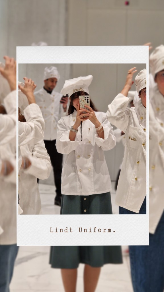 The workshop group was separated into German- and English-speaking participants. We even got to wear Lindt uniforms, which was honestly such a highlight – I would have happily taken mine home! Our chocolatier guide was super knowledgeable and shared some really cool facts. For example: did you know that Lindt chocolate made in Switzerland tastes different than the same Lindt bar made abroad? It is not just about the milk or added ingredients. Switzerland is the only country that has exclusive rights to a special, high-quality cocoa bean from Ecuador, which gives Swiss-made Lindt chocolate its unique flavor. Another insider tip: never eat chocolate cold! Cold temperatures dull the flavor. So, if you store your chocolate in the fridge, let it come to room temperature before eating – or as our guide cheekily said, “if you like it cold, just buy cheap chocolate.”