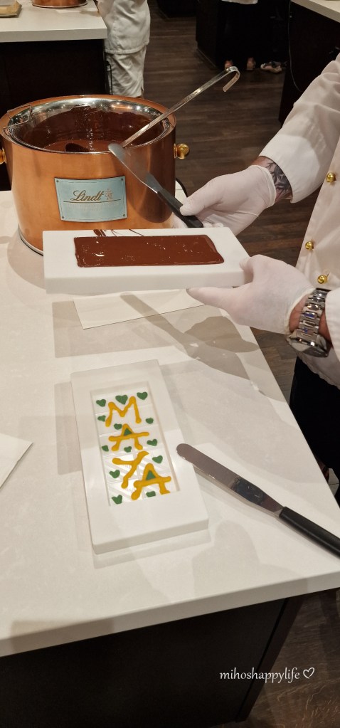One of the best parts? The tasting stations! You get to taste melted chocolate – dark, milk and white – and even try different Lindt chocolate bars. And here is a fun fact I learned: the Swiss eat more chocolate than any other country in the world – around 8 kg per person per year!