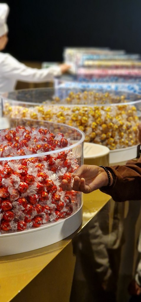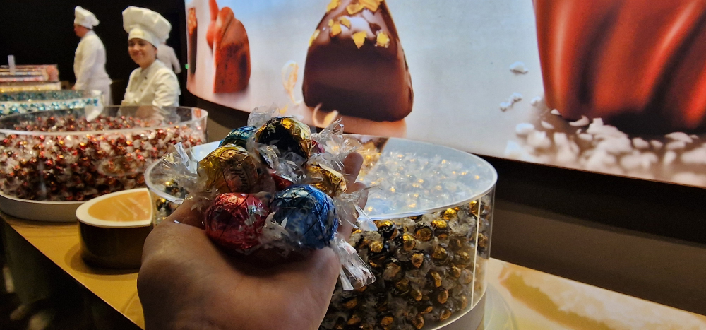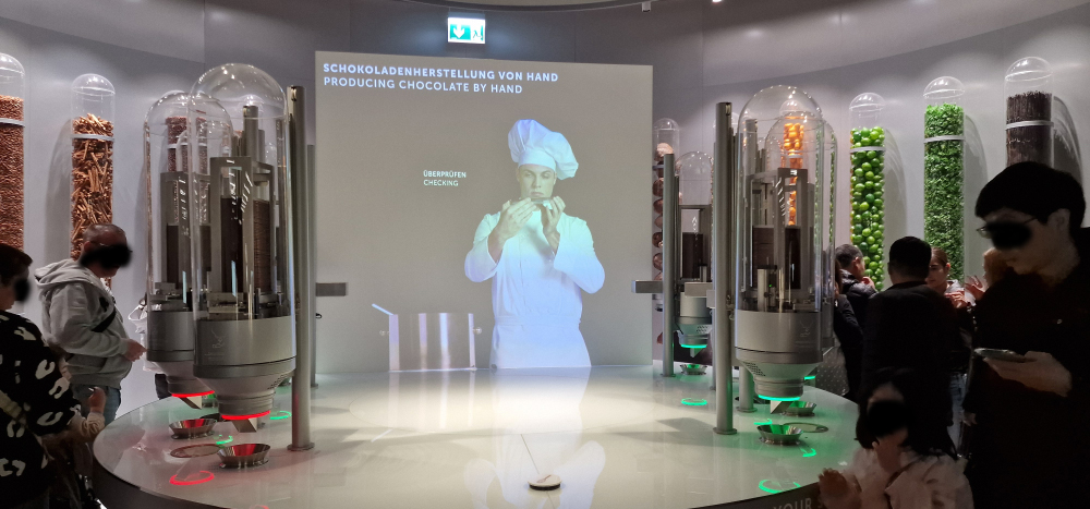 At the end of the museum, there is a colorful Lindor chocolate ball station where you can choose from a variety of flavors; from classic milk to exciting options like salted caramel or cheesecake. We had to speed through the final parts of the exhibit because we arrived a bit later than planned and had less than an hour for everything. I would definitely recommend allowing at least 70 to 90 minutes to explore at a relaxed pace.