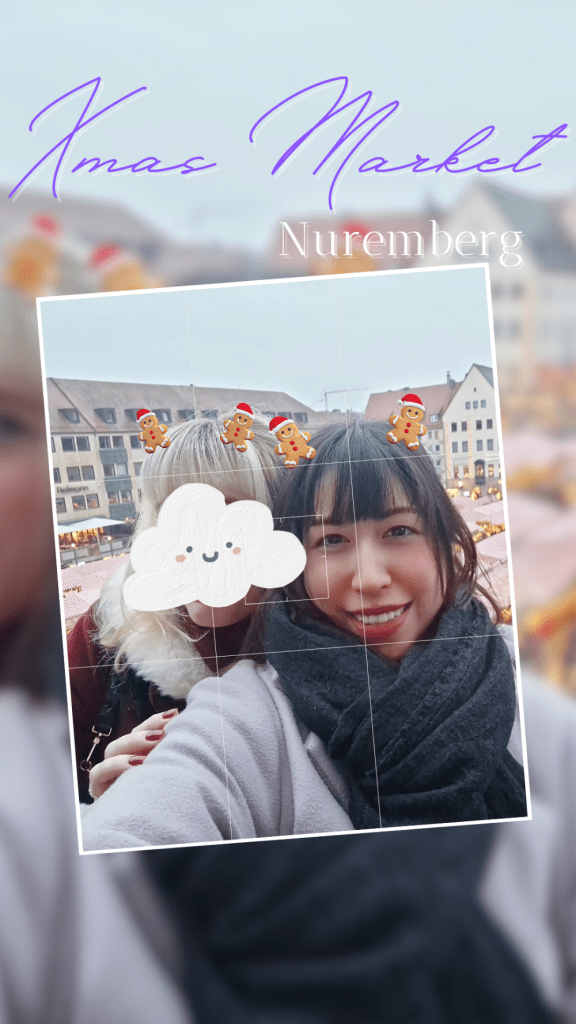 The next day, we continued on to Nuremberg, which is about a 1.5-hour train ride from Würzburg. We spent one night there and, of course, visited the Christmas market, which was the main reason for our trip. There were Nuremberg sausages everywhere, haha, and lots of amazing stalls. The market itself was very large and spread out across different locations, so we definitely didn’t have enough time to see everything. The view from the Frauenkirche was beautiful – the 4 euros were definitely worth it. For food, we treated ourselves to a warm ramen at Izakaya Monki, which felt so good! All in all, I had an incredibly lovely girls’ trip – a big thank you to my friend for our first trip together. I hope I was bearable, haha. I really hope we can do something this nice again sometime!