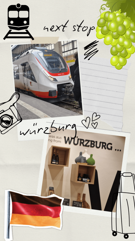 We started our journey in Zurich, taking the Deutsche Bahn towards Würzburg with a transfer in Stuttgart. The whole trip took a comfortable six hours and thankfully everything went smoothly. We arrived on time – which honestly felt like a little miracle, since Deutsche Bahn isn’t exactly famous for its punctuality.