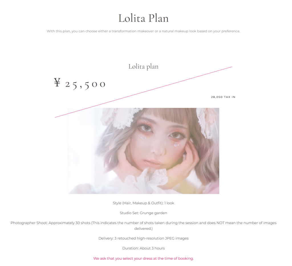 I had a morning slot and I highly recommend planning enough time. The entire experience takes about three hours. Around two hours are dedicated to make-up, hairstyling and the photoshoot itself. If you decide to add extra options – as I did by choosing all photos digitally for 11’000 yen – you should plan around 45 additional minutes.