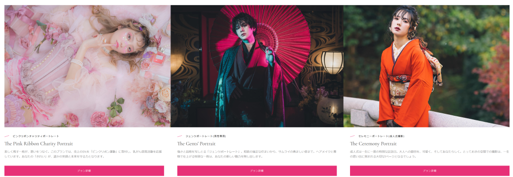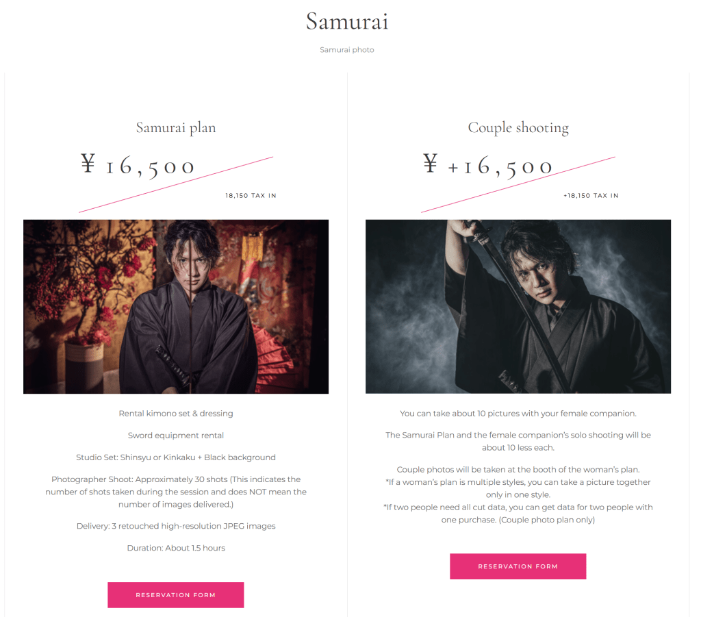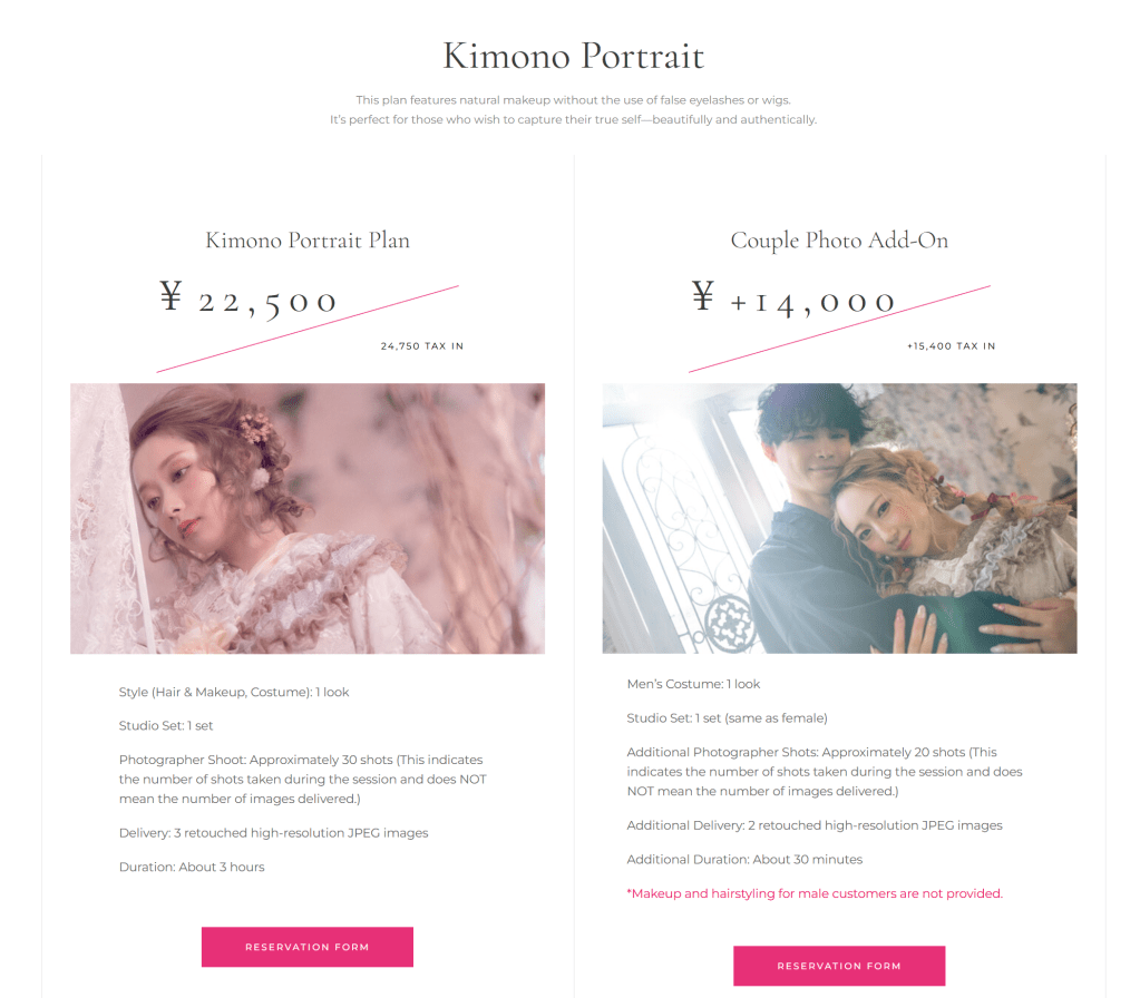 - Group shot about 10 cuts 3’850 yen per person *Reservation required