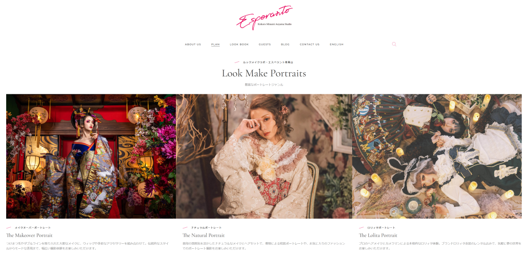 Studio Esperanto offers a range of themed portrait experiences in Tokyo – from glamorous makeover shoots to Lolita, Kimono, Samurai, Sharaku and seasonal plans (starting ~¥18,150). Most experiences include professional makeup, costumes, photographed shots and a set number of retouched images. Optional add-ons let you expand the number of images and creative effects for extra fees.